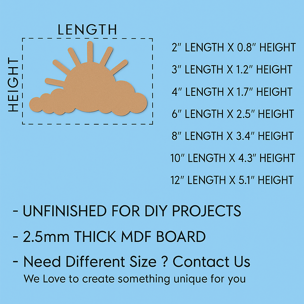 - Best Fit for: <MDF Sun And Clouds Shape Small> Embellishment offers great decoration ideas for various parties, such as baby showers, weddings, birthdays, academic celebrations, Festivals, etc.